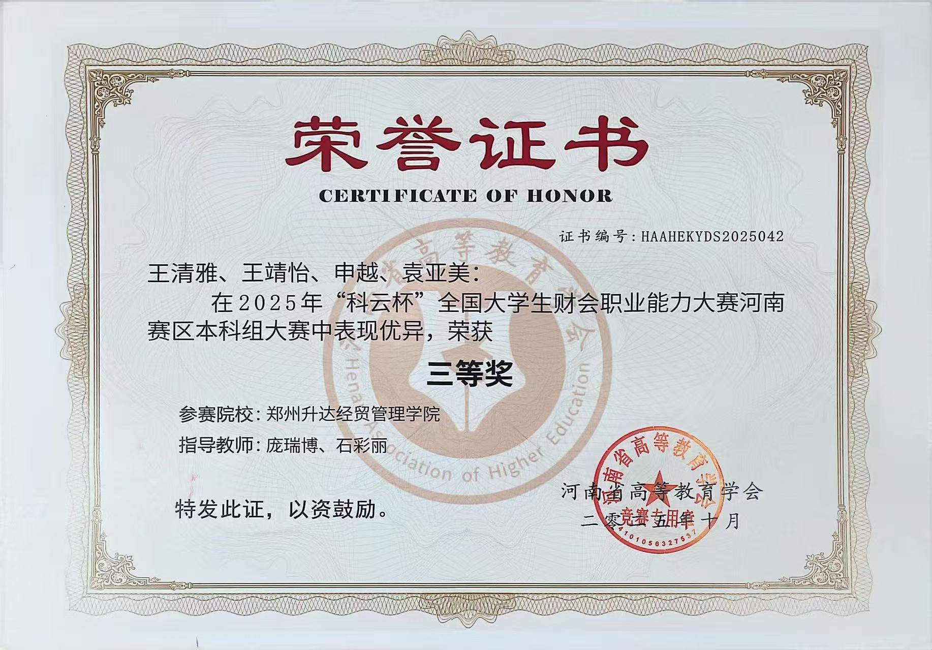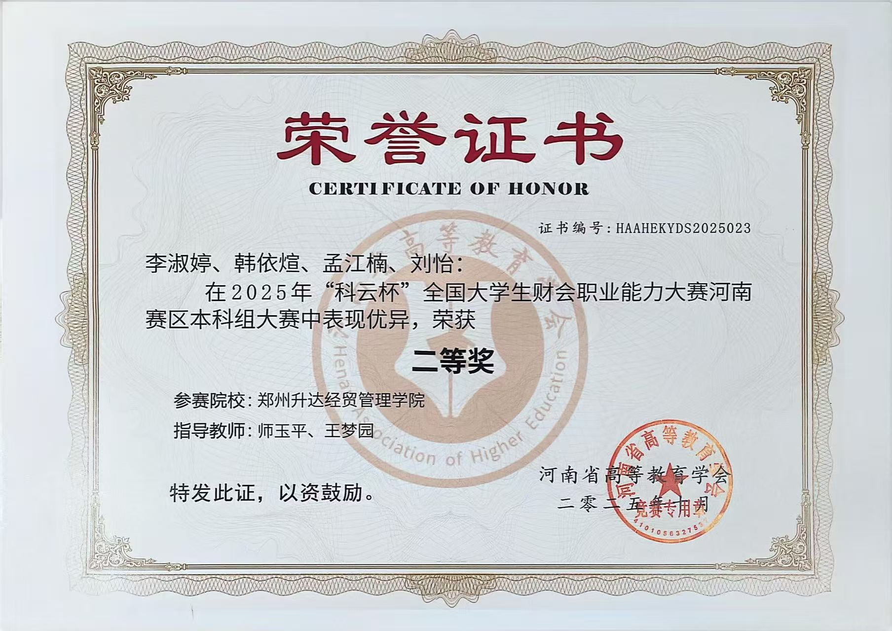 太阳网集团tcy8722将学科竞赛作为提升人才培养质量的重要抓手,高度重视本次比赛,精心组织学生开展报名、选拔与培训工作,最终遴选出两支代表队参赛,分别为:由2023级财务管理本科2班刘怡、李淑婷、韩依煊、孟江楠组成的财经锦鲤队和由2023级审计本科3班王清雅、申越、王靖怡和2023级财务管理本科1班袁亚美组成的袁申王王队。两支代表队分别在师玉平、王梦园、庞瑞博和石彩丽等四位老师的悉心指导下,凭借扎实的专业功底、敏捷的逻辑思维和娴熟的数据处理技能,获得了优异成绩。其中,财经锦鲤队获得二等奖,袁申王王队获得三等奖,为学校争得了荣誉。