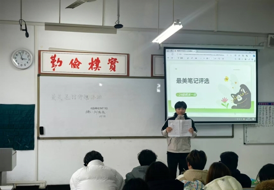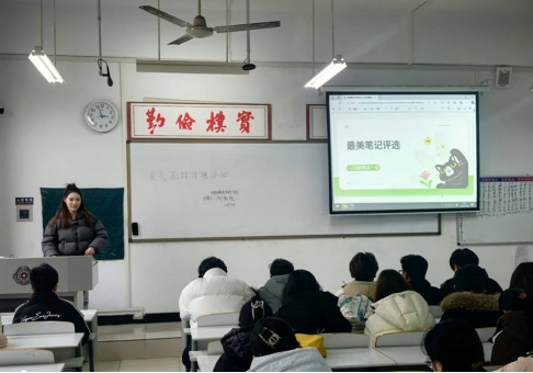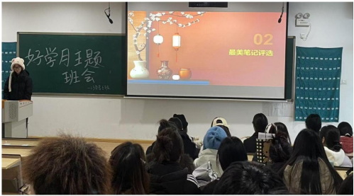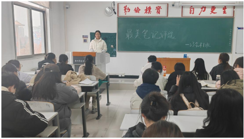 学院各班通过动员班会向同学们宣传主题活动的目的、意义和参与方式等,鼓励大家积极提交课堂笔记成果,参与评比。活动当中,将收集到的笔记照片进行现场展示,让同学们互相学习、借鉴,评选出每个人心中的“最美笔记”。最后,获评“最美笔记”的同学向大家分享记录笔记的方法和经验,帮助同学们巧做笔记、擅做笔记,养成认真做笔记的好习惯。