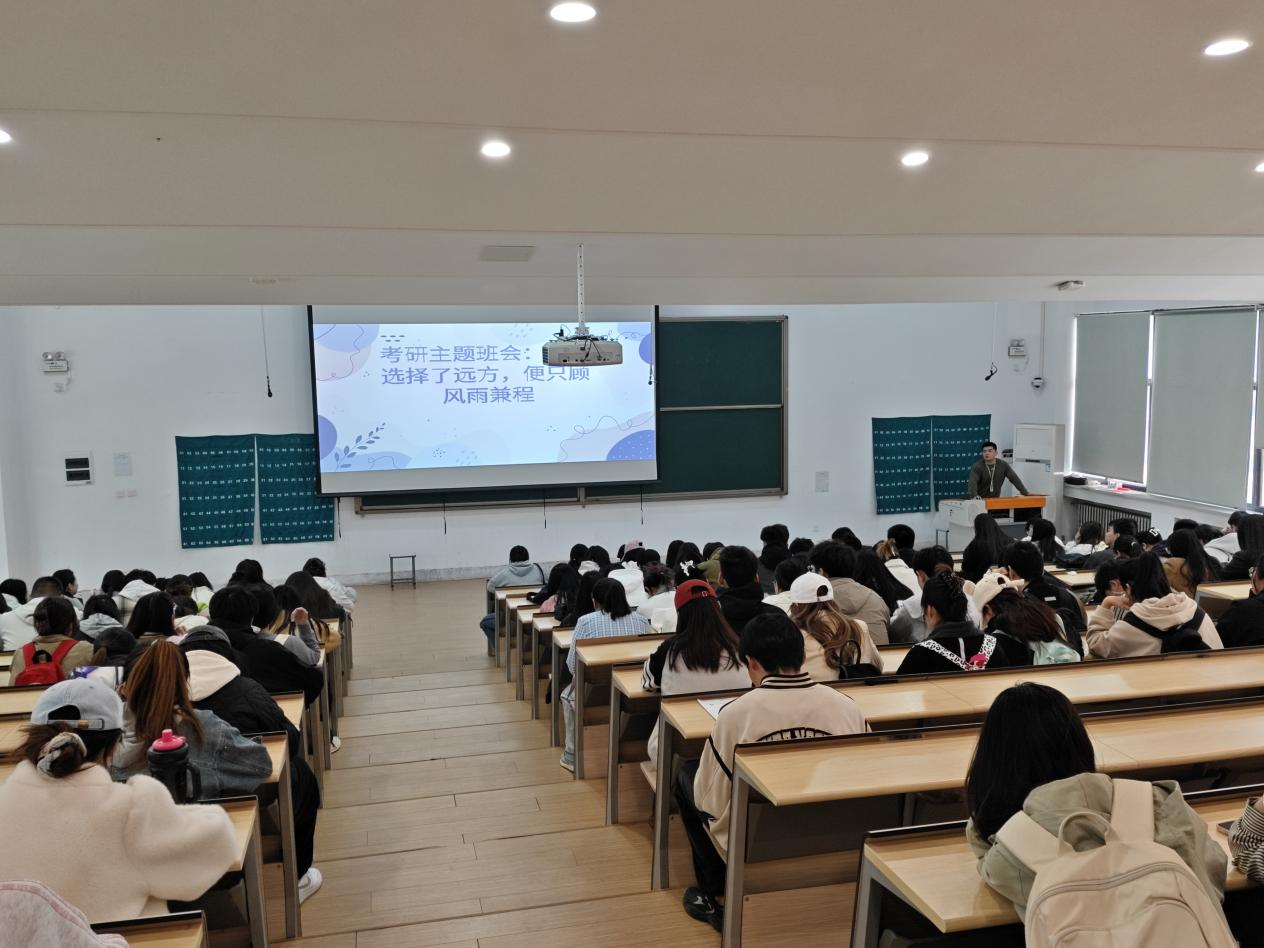 最后,路飞龙老师对本次班会进行了总结。他鼓励同学们要坚定信念,勇往直前,在考研的道路上不断努力,并表示学院会为同学们提供全方位的支持和帮助。同学们也纷纷表示,通过此次班会,自己对考研有了更深入的了解,明确了努力的方向,将以更加饱满的热情和坚定的信心投入到考研备考中。