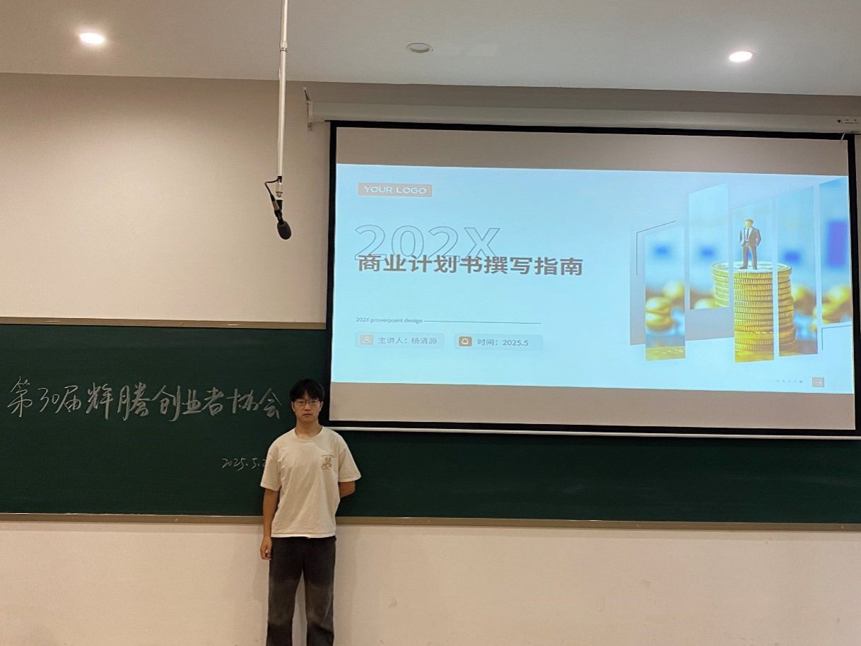 活动伊始,辉腾创业者协会负责人杨清源详细介绍了培训背景与目标。他强调,商业计划书是创业项目的“敲门砖”,其撰写能力不仅关乎项目落地,更是逻辑思维与商业表达能力的综合体现。随后,进入知识讲解环节,社长杨清源围绕商业计划书核心框架展开阐述,深入剖析内容撰写技巧,从市场分析到营销策略,从团队组建到财务规划,为同学们勾勒出一份优质商业计划书的轮廓。紧接着,在互动答疑环节,同学们踊跃提问,将自己在商业计划书构思与撰写过程中的困惑一一抛出。社长杨清源针对性解答,同时鼓励同学之间相互交流,分享各自的创意与想法,现场气氛热烈,思维的火花不断碰撞。最后,活动鼓励同学们运用所学,独立完成商业计划书内容。