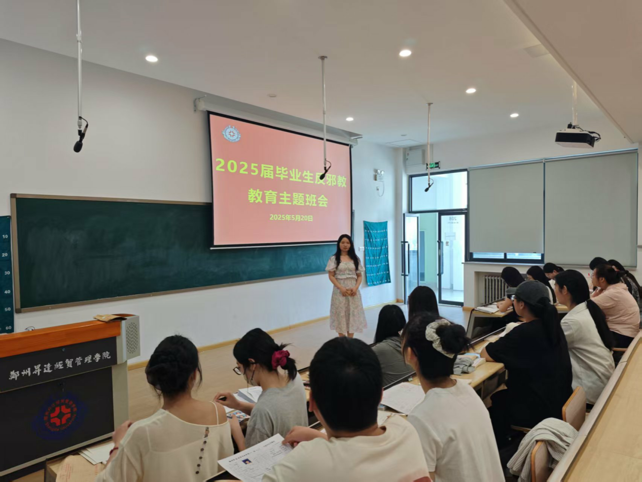 班会上,辅导员通过组织学生集中观看反邪教宣传教育视频使毕业生充分认识邪教、迷信等活动的本质及危害性,揭批邪教组织丑恶本质,教育引导毕业生树立科学健康的生活理念。