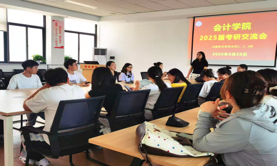 为深化“好学月”学风建设方案,巩固学院学风建设成果,切实提升育人成效,落实“好学月”活动计划,在毕业生返校之际,22 级财务管理 1、2、3 班精心组织了2025 考研经验交流会。6 位来自不同高校、不同专业的优秀毕业生齐聚一堂,为有意向考研的学弟学妹们分享宝贵的考研经验与心得。此次交流会由辅导员蔡艳丽老师主持,22级财务管理1、2、3 班有考研意向的同学积极参与。