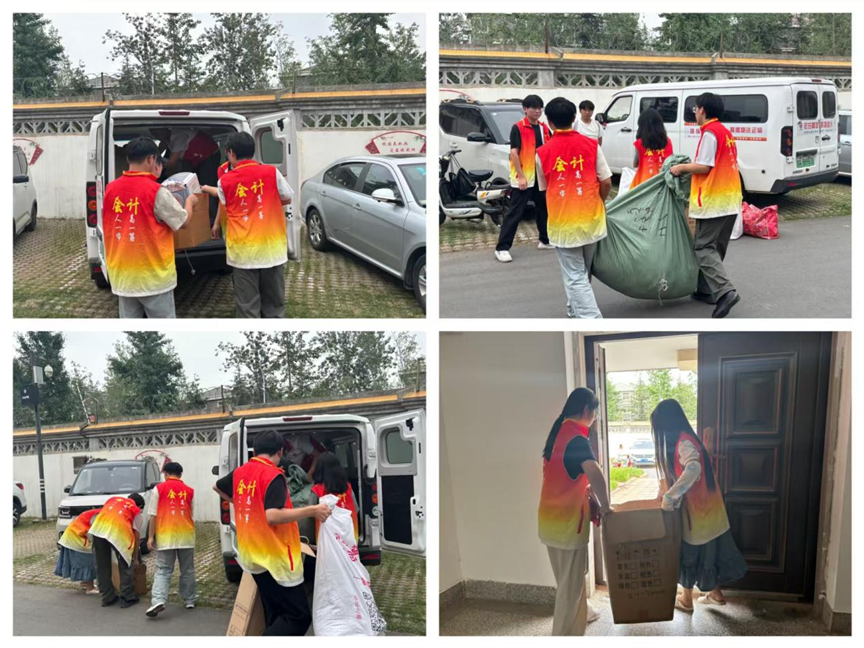 为确保活动高效有序,在社团指导老师陈刚老师和社长蔡燕凤的指导下,志愿者们提前对我院毕业生爱心捐赠的物资进行整理。活动当日,志愿者们集结于教学楼四号楼,服装整齐划一,迅速进入“战斗状态”,或搬运装满衣物的袋子,或核对捐赠清单,在搬运通道上形成有序的“爱心传送带”。面对每一件捐赠衣物,志愿者们严格执行质检标准,仔细检查衣物的完整性,并为符合要求的衣物封装入箱。与公益组织交接时,双方以 “一对一” 核对方式,对每箱物资的品类、数量、质量情况进行逐项确认,确保爱心传递“零误差”。活动尾声,在灿烂阳光下,志愿者与公益组织成员共同定格下温暖瞬间,飞扬的笑容与堆叠整齐的爱心包裹,勾勒出新时代青年的责任与担当。