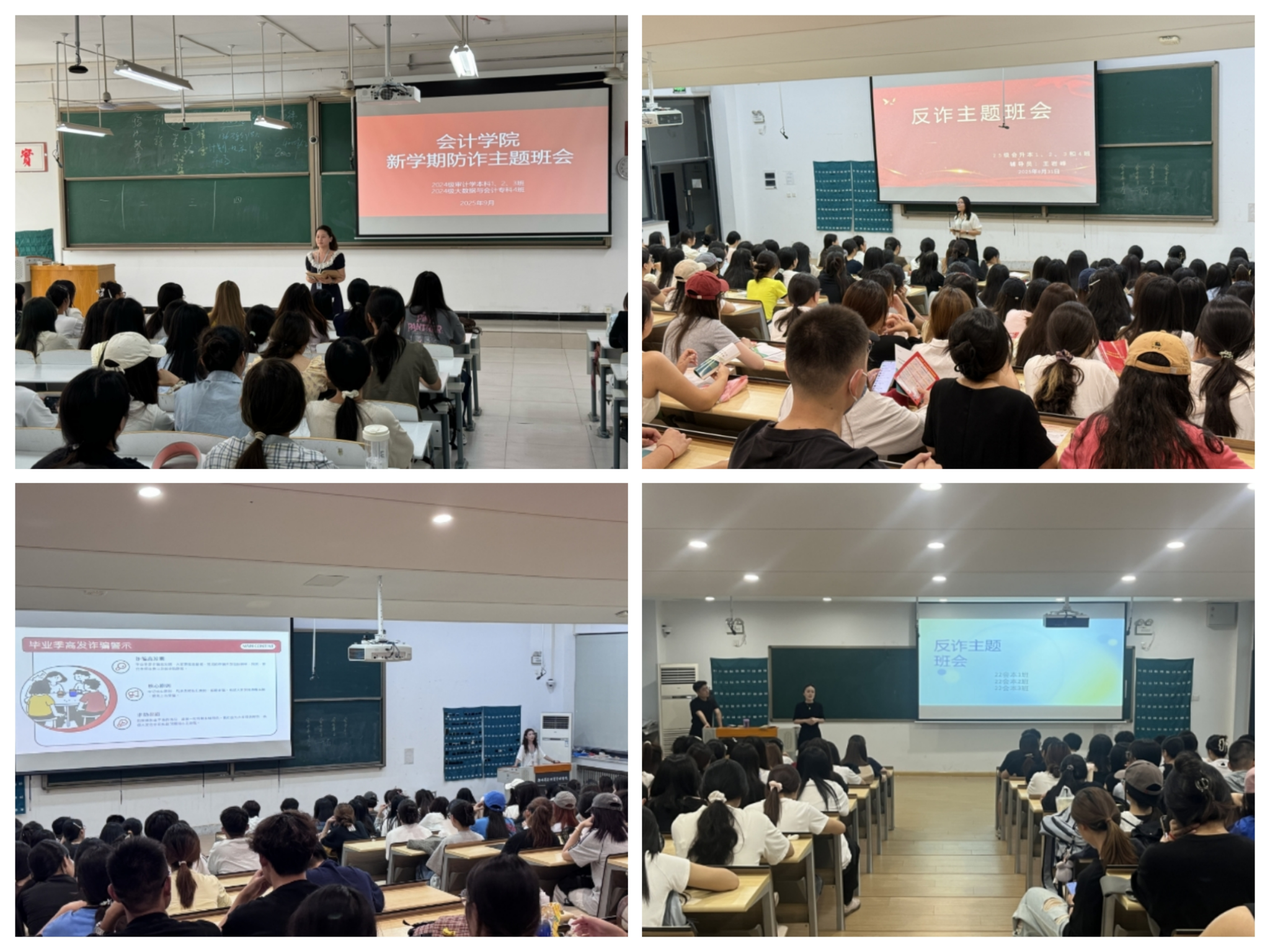 各班辅导员结合《防范电信网络诈骗宣传手册》中的高发案例,详细讲解了网络刷单、虚假投资、冒充公检法、钓鱼链接、情感诈骗等典型电信诈骗手段,揭露了诈骗分子利用技术漏洞与心理弱点实施犯罪的套路。辅导员们还通过情景模拟演示,指导同学们如何识别钓鱼短信、验证信息来源、设置支付安全锁等实用技巧,并现场教学国家反诈中心APP的举报与预警功能,呼吁全院学生安装使用。最后,提醒同学们在遇到诈骗现象时应如何有效应对,进一步提高了同学们自我预防、自我保护、自我应对诈骗的能力,提升了同学们的防骗意识。