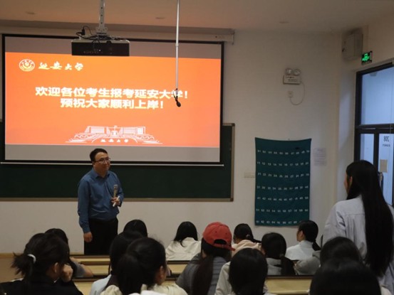 首先,主讲老师对延安大学的历史沿革、办学特色、学科建设以及校园文化进行了系统介绍,让在场同学对这所拥有深厚底蕴的高等学府有了更为全面的认识。随后,主讲老师聚焦于同学们最为关切的研究生招考政策,就延安大学相关硕士点的专业优势、师资力量、科研平台及近年来的招生情况进行了详尽解读。随后,在互动答疑环节中,同学们踊跃提问,张老师对每个问题都给予了耐心细致地解答,并提供了具有针对性的建议,现场气氛热烈融洽。最后张老师向本次参与的同学给予最真诚的祝福,希望大家能够考入自己心仪的研究生院校。