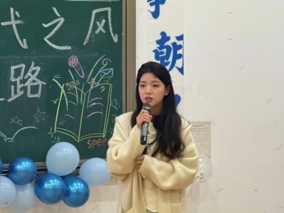 首先,选手们紧扣“时代”与“革新”主题,结合自身经历与专业认知各抒己见。在即兴演讲环节,面对突发考验,选手们沉着冷静、快速构思,展现出极强的临场应变能力与逻辑思维能力,为在座的观众带来一场视觉盛宴。随后,学艺部干事余浩玲同学为大家带来歌曲《繁花》,精彩的表现赢得现场评委与观众的阵阵掌声。最后,在比赛结束后进行现场评选,由王文锦、岁一转、郎子曦分别为荣获三等奖、二等奖、一等奖的同学们进行颁奖,由汤振全为获得精神文明奖、道德风尚奖和最佳组织奖的班级分别进行颁奖。