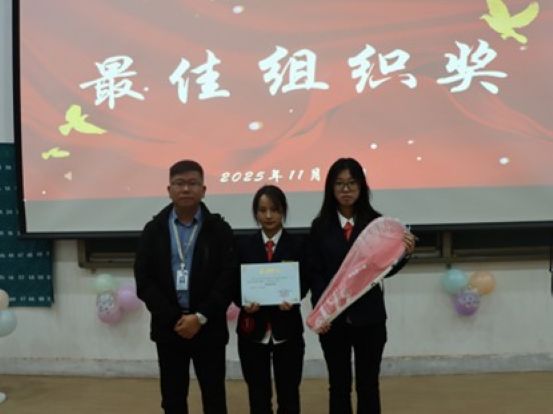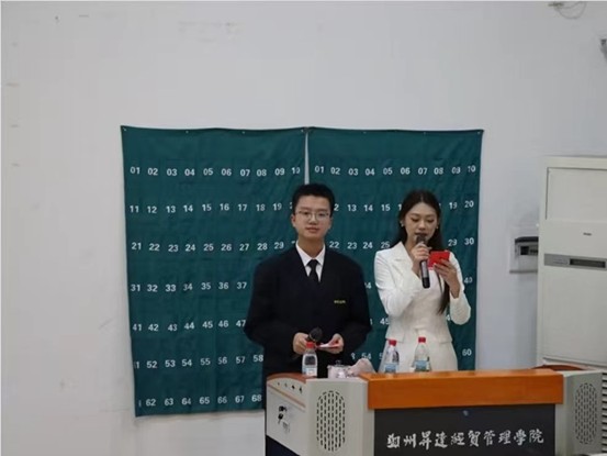 最后的环节是最激动人心的颁奖,王文锦、孙泽、岁一转、郎子曦分别为荣获优秀奖、三等奖、二等奖、一等奖的同学们进行颁奖,徐梦露、汤振全分别为获得精神文明奖、道德风尚奖的班级分别进行颁奖,最后陈刚老师为获得最佳组织奖的班级颁奖。