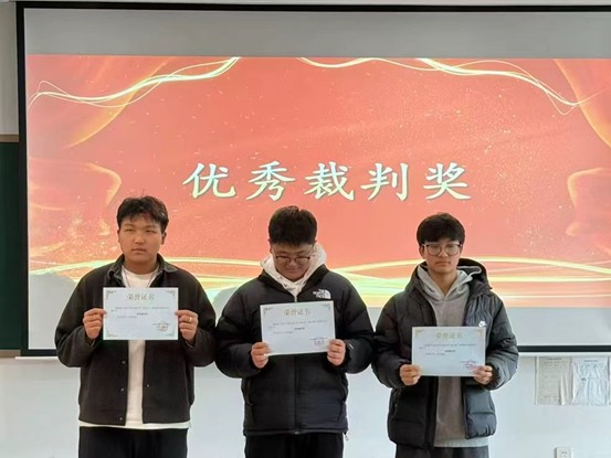 比赛现场气氛热烈。哨声响起,各参赛队伍迅速投入紧张角逐。队员们奔跑、跳跃、传球、投篮,每个动作都充满力量与激情。无论是精准的远投,还是流畅的团队配合,都不断引发观众的热烈欢呼。赛场上比分交替上升,竞争胶着,充分展现了同学们对篮球运动的热爱和自身顽强拼搏的精神。为了对2025年“新生杯”篮球赛中参赛队伍的积极参与和努力拼搏精神表示肯定,12月2日12:10,在教学四号楼108教室举行了颁奖仪式,分别为获奖的参赛团队颁发荣誉证书及奖品,同时为表现优异的个人进行了表彰。