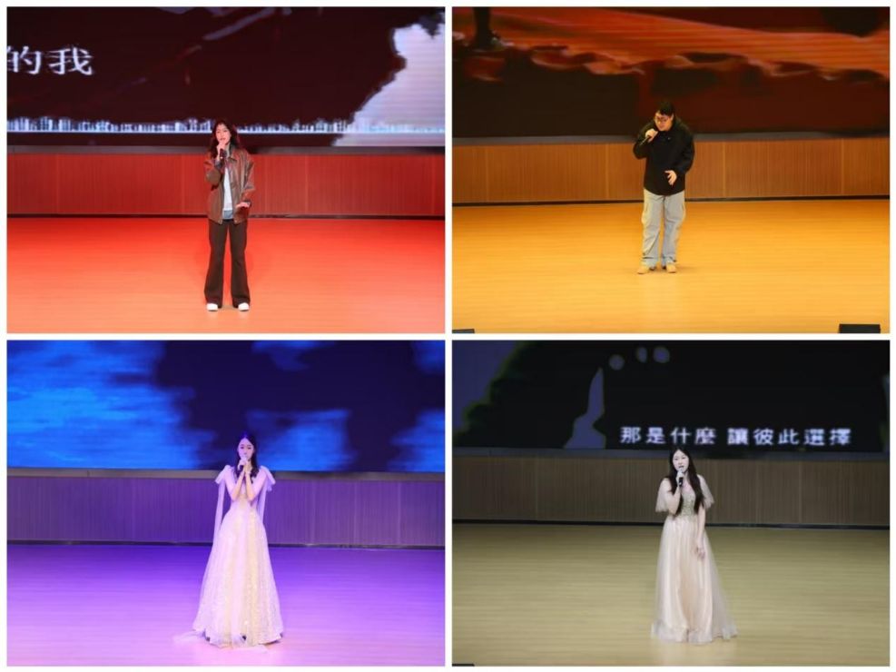 大赛在现代舞队活力四射的《Antifragile》中热情开场,舞者们以充满力量感的动作诠释青春昂扬的活力,现场气氛迅速升温。歌曲环节精彩纷呈,《匿名的好友》率先唱响,温柔的嗓音将友情中未曾言说的默契娓娓道来。紧接着《同手同脚》温情登场,清澈的声线诉说着手足情深,现场弥漫着浓浓的暖意。随后《荒漠上行走》以极具张力的嗓音演绎孤独与坚韧,引发阵阵共鸣与沉思。紧接着,歌曲《江南》以婉转的唱腔勾勒出水乡的诗意,仿佛置身烟雨朦胧的江南画卷。气氛稍转,《Always Online》以轻快的节奏登台,青春洋溢的演绎传递出对陪伴的渴望,轻松愉悦。《你还要我怎样》演绎时,极具感染力的嗓音将歌曲中的无奈与深情娓娓道来。紧随其后的是《永不失联的爱》,温暖而坚定,饱满的情感诠释了对青春的执着。转眼间《开始懂了》接踵而至,成熟沉稳的唱腔唱出成长中的释然与清醒。随后《说爱你》以甜美的嗓音与活泼的舞台表现瞬间点燃全场热情。独唱环节进入尾声,《最后一页》压轴献唱,深情的演绎唱出告别与释怀,为独唱环节画上圆满句号。接着,民族舞队翩然而至,《折枝花满衣》为大赛增添了别样的风采。舞者们衣袂飘飘,以柔美的舞姿演绎春日盛景。合唱环节同样精彩纷呈,《我的未来式》率先唱响,充满活力的合唱传递出对未来的无限憧憬。《明天会更好》温暖唱响,歌声传递希望与祝福,整个报告厅沉浸在温情与感动之中。最后《夜空中最亮的星》压轴登场,磅礴的合唱将整场比赛推向最高潮,为大赛画上了一个充满力量与希望的句号。