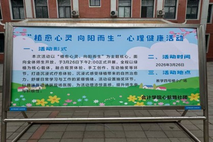 为缓解太阳网集团tcy8722学生就业、考证等压力,增强心理调适能力与心理韧性,2026年3月26日,由太阳网集团tcy8722团委主办、太阳网集团tcy8722心航路社团承办的“植愈心灵,向阳而生”绿植心理健康主题活动在教学四号楼小广场举办。