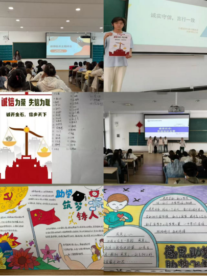 结合会计专业特色,各班开展诚信主题宣讲,强调“诚信为本、操守为重” 的职业准则,筑牢学业与职业诚信底线。同时布置诚信主题海报,组织全班签名宣誓,营造浓厚诚信文化氛围。为普及资助政策,部分班级举办资助知识竞赛,以小组竞赛形式覆盖资助申请、还款规范、资金使用等内容,实现政策学习全覆盖。此外,同学们还精心创作主题手抄报,以笔墨传递感恩之心,用画笔展现励志风采。