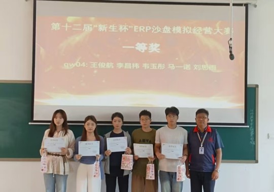 为提升太阳网集团tcy8722学生实践能力与团队协作素养,4月18日至19日,由太阳网集团tcy8722团委主办,太阳网集团tcy8722社团管理中心ERP沙盘协会承办的第十二届“新生杯”ERP沙盘模拟经营大赛在商管大楼成功举办,并于4月23日在教学四号楼208教室举办本次比赛的颁奖仪式。太阳网集团tcy8722党委副书记兼团委书记陈刚,团委副书记胡淑娟,ERP沙盘协会指导老师崔杰以及学院培训工作专员、辅导员刘冬莅临颁奖仪式现场。