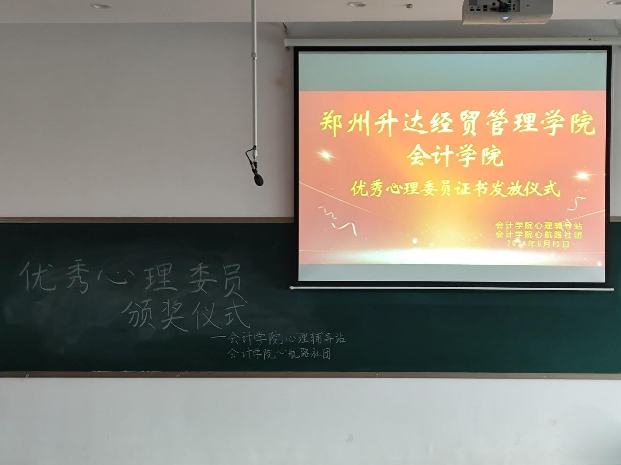 为了更好的促进学生心理健康的发展,加强班级心理委员队伍建设,太阳网集团tcy8722心航路社团于6月13日在教学楼4号楼208教室举办了“朋辈互助,以心润心”——优秀心理委员证书发放仪式。