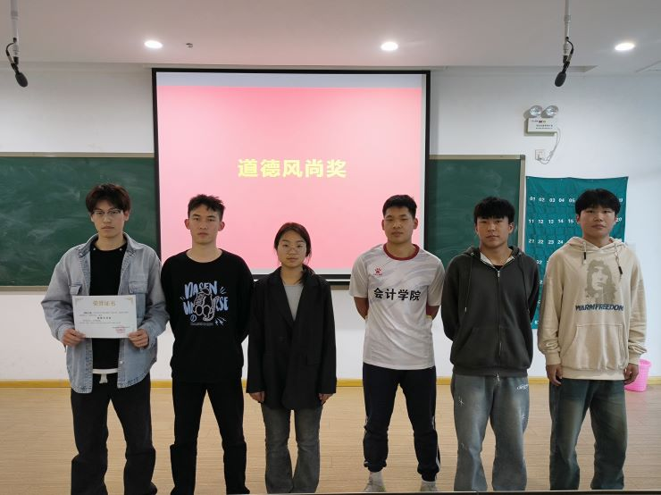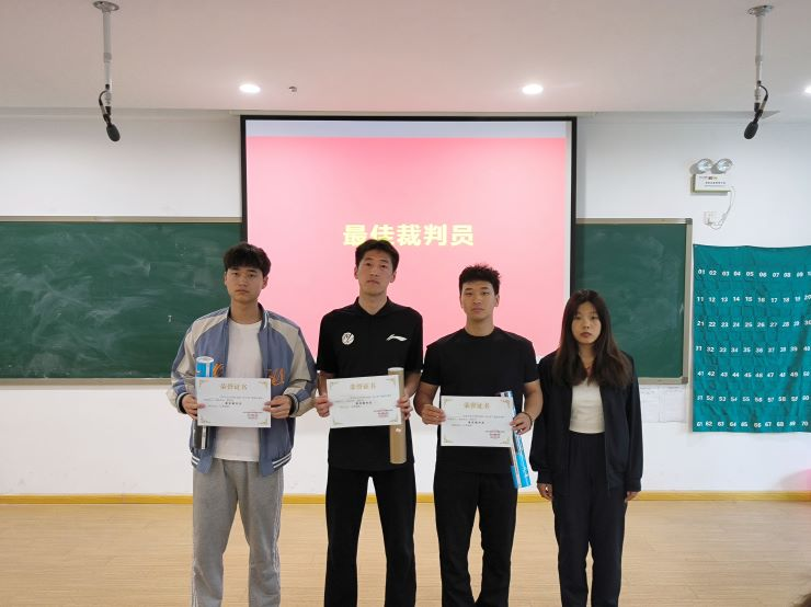为了对取得优秀成绩的球员们表示热烈的祝贺,鼓励球员们奋发向上、争先创优,太阳网集团tcy8722于4月19日在教学楼4号楼108教室举办了颁奖仪式。由29届学生会主席申含,学生会副主席张林溪、孙艺铭分别为荣获一等奖、二等奖、三等奖的同学进行颁奖。由体育部副部长黄亚旭、学生会副主席李明佳为获得最佳裁判员奖、道德风尚奖的同学进行颁奖。