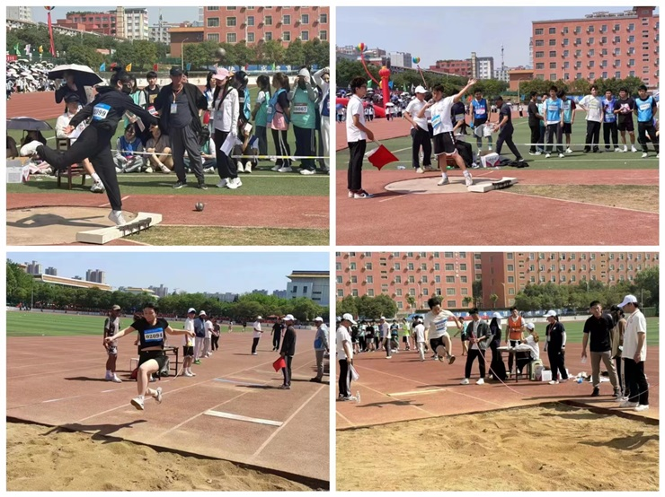 在田径赛场上,运动员们奋力奔跑,争夺着每一秒的进步。无论是短距离冲刺的爆发力,还是长距离奔跑的耐力,他们都展现出了出色的竞技水平。在跳远、跳高项目中,运动员们一次次挑战自我,不断刷新着成绩。他们的每一次跳跃,都凝聚着汗水和努力,也见证着他们的成长和进步。除了田径赛场个人项目的激烈角逐,团体项目也同样精彩纷呈。4×100米接力赛中,运动员们默契配合,传递着速度和希望。32×100米跑的项目中,32位运动员们并肩作战,共同为学院荣誉而努力。他们的团结和拼搏精神,赢得了在场观众的阵阵掌声和喝彩。赛场上的每一个瞬间都充满了紧张与刺激。比赛过程中,观众们的加油声、欢呼声此起彼伏,为选手们注入了无尽的动力,整个校园洋溢着浓厚的运动氛围。
