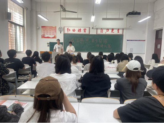 有的班级开展“诚信感恩 自立自强”主题演讲比赛,由获得国家资助的学生参与励志演讲,向全体同学宣传资助政策,抒发感恩之情。有的班级开展励志主题观影活动,用生动的影视作品触激学生的心灵深处,激发同学们自强不息、励志前行的动力。有的班级开展自立自强典型事迹宣讲,在同学中树立典型,鼓励大家积极效仿学习。