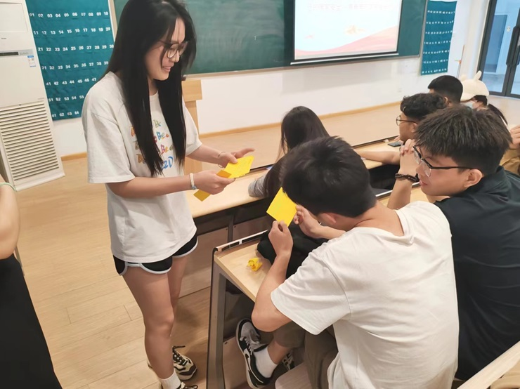 李梦薇阐述了新时代国家安全的丰富内涵和外延,接着第二组成员对国家安全进行了研讨展示,以案例讲述了当前国家安全和保密工作面临的挑战,同时分享了一些危害国家安全的案例,强调了维护国家安全人人有责。会议最后通过“击鼓传花”的游戏互动和填写“全民国家安全教育日”知识测试题的方式对国家安全知识进行巩固。