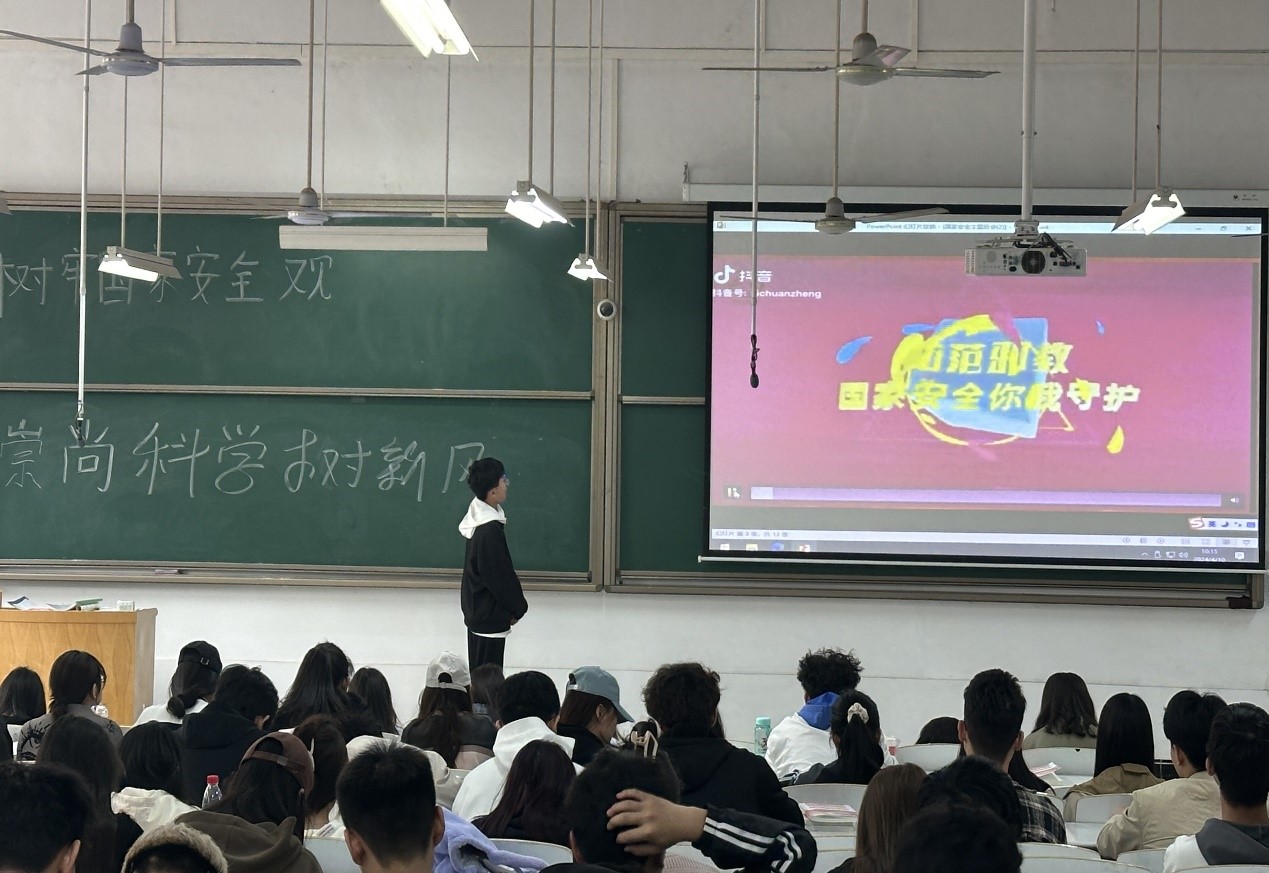 各班辅导员老师精心策划,通过多媒体展示、讲解、讨论等多种形式,向同学们详细介绍了国家安全的内涵、外延以及当前面临的形势与挑战。在班会上,辅导员老师们通过生动的案例,让同学们了解到了国家安全面临的复杂环境和严峻挑战,增强了同学们的国家安全意识和危机意识,并向同学们强调了反邪教宣传教育是维护国家安全教育的组成部分,要加强对国家安全和反邪教法律法规的学习,切实提高自身对邪教组织的警惕性、鉴别力和防范力。