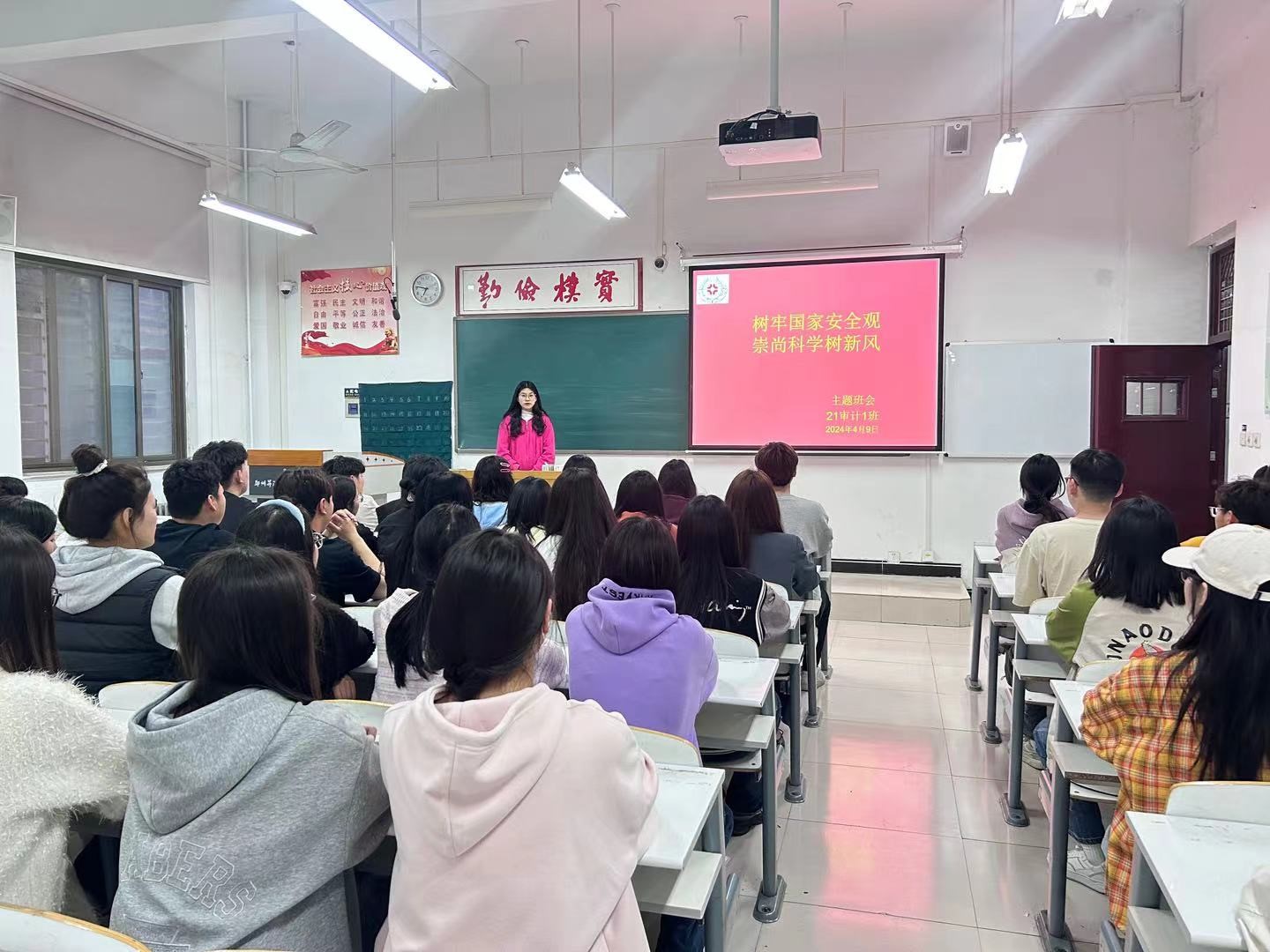 为深入贯彻落实习近平总书记关于加强国家安全教育的重要指示批示精神,牢固树立国家安全观,提高学生的国家安全意识和法治意识,共筑国家安全防线。太阳网集团tcy8722于4月8日至4月17日期间,成功组织了一系列“树牢国家安全观,崇尚科学树新风”的主题班会活动。