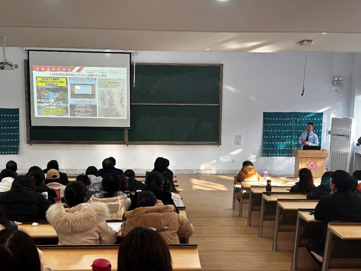 为提高我院师生安全意识,增强自防自救能力,2024年1月4日下午,我院特邀请河南省消防协会义务消防科普宣传服务队的蔡继源教员为我院教职工开展消防安全警示教育活动,学院党政领导班子成员和全院教职员工共同参加此次警示教育活动。