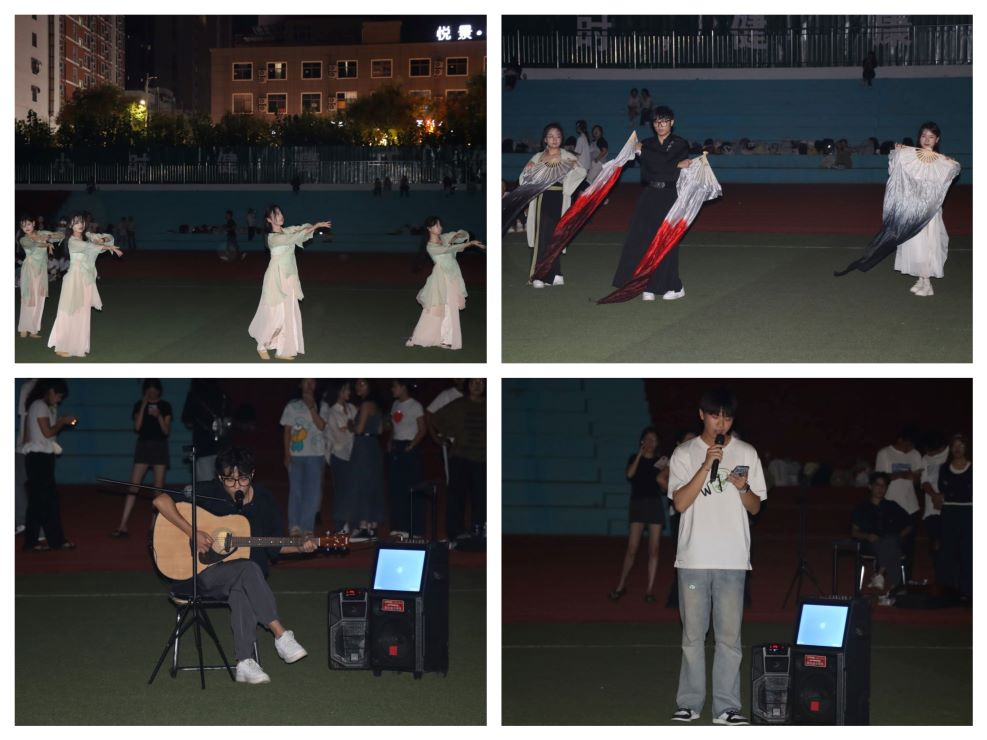 演出以现代舞队激情四溢的爵士串烧开场,瞬间点燃了全场的热情。随后,舞蹈串烧接踵而至。一首《这世界有那么多人》的深情演唱,如同一股暖流,缓缓流入观众心间。在舞蹈《起风了》中,舞者灵动优美的身姿宛如随风飘动的花瓣。一曲富有民族特色的《莫合茹》,仿佛把大家带到了辽阔的草原。礼仪队的走秀则展现了优雅与时尚的完美结合。民族舞队的《烟雨行舟》把民族舞蹈的韵味诠释得恰到好处。国学社带来的舞蹈《霍元甲》刚柔并济,尽显国学魅力。一首《如果爱忘了》更是引发了同学们的情感共鸣。最后,国学社成员弹唱的《晴天》为这场演出画上了圆满的句号。