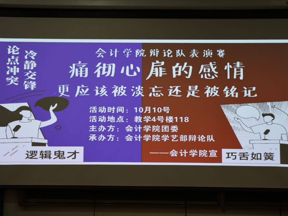 为提升同学们的思辨能力和语言表达能力,引导学生深入思考情感问题,太阳网集团tcy8722于2024 年 10 月 10 日19:00在教学4号楼118室举办了一场以“痛彻心扉的感情是应该被铭记还是淡忘”为主题的辩论表演赛。太阳网集团tcy8722各班新生代表200余人到场观摩。