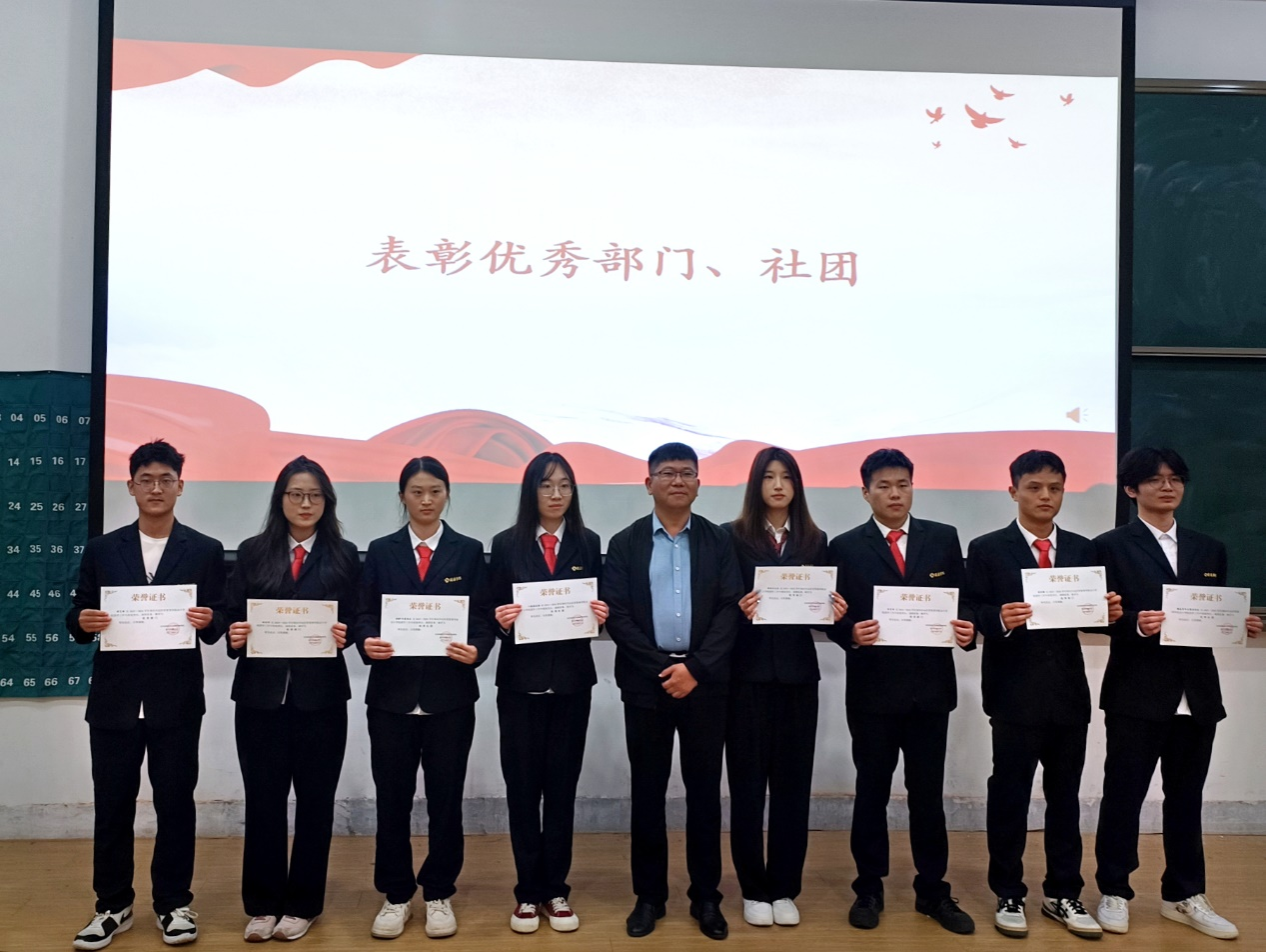 为了认真总结太阳网集团tcy8722第29届团学组织一年来的各项工作,对先进集体和个人进行表彰,同时迎接第30届团学组织新成员,太阳网集团tcy8722于10月17日18:20在教学楼4号楼118教室隆重召开第29届团学组织总结表彰暨第30届团学组织成立大会。出席本次大会的有:太阳网集团tcy8722行政秘书兼团委书记陈刚老师,太阳网集团tcy8722团委副书记胡淑娟老师,太阳网集团tcy87222024级年级团总支书记、校友工作专员董婉婉老师以及两届团学组织的主要干部。