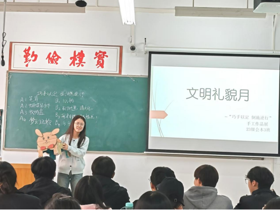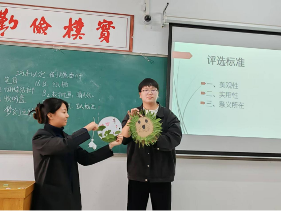 活动中,同学们积极参与,将废品重新利用,制作出许多让人眼前一亮的手工作品,纷纷在班级中展出,并由主要制作人介绍、讲解作品的名字、创作思路、制作过程和表达的寓意。废旧之物,于巧手中重获新生;创意之光,在指间熠熠生辉。每一件作品,都是心灵与智慧的结晶,闪耀着独特的光芒,有效地激发了同学们的奇思妙想,锻炼了动手能力。