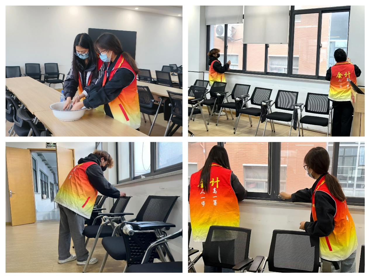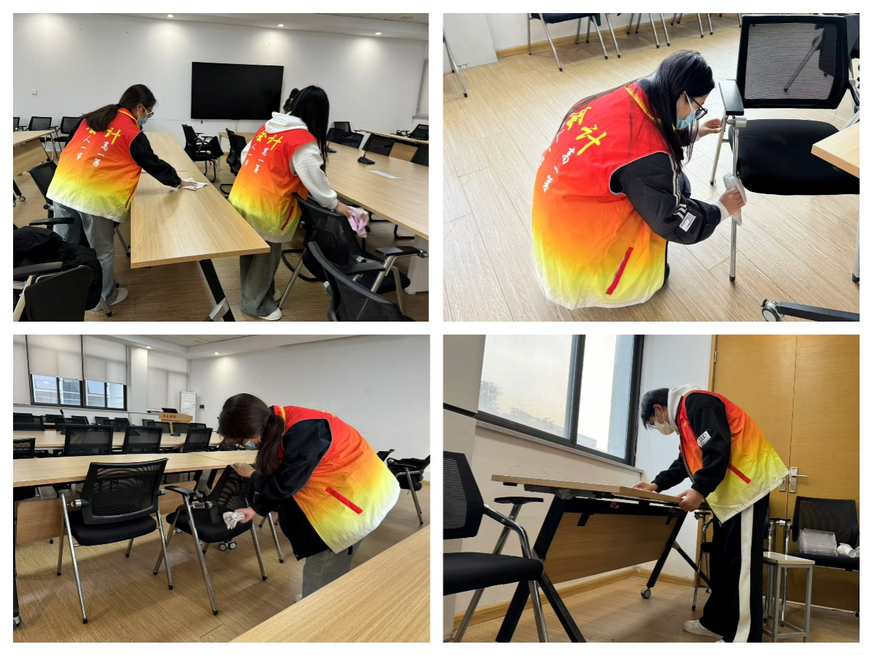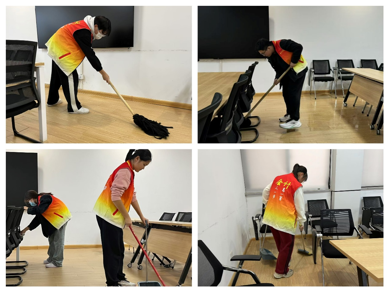 活动开始前,社长蔡燕凤对志愿者们进行了详细分工,明确了每个同学的职责和目标。志愿者们携带着清洁工具分组进行打扫,用抹布仔细地擦拭桌椅、窗户及柜子,打扫地面、拖地,不放过每一处卫生死角。在志愿者们近2小时的认真打扫下,会议室、资料室等学院公共场所焕然一新,同学们用汗水和勤劳的双手创造了干净整洁的环境。