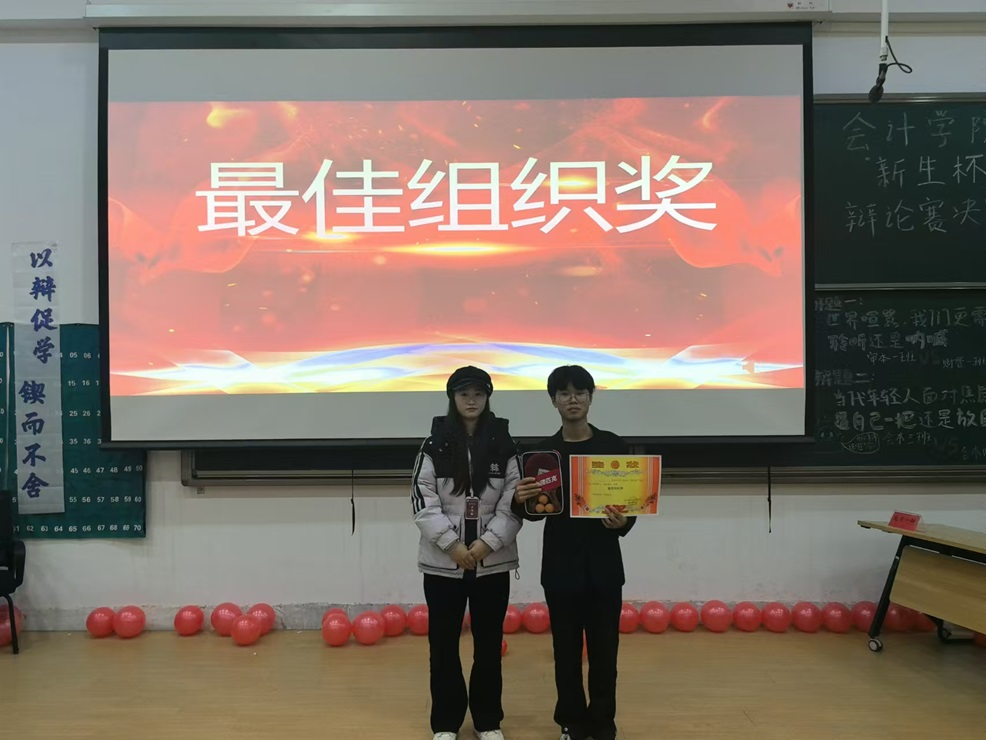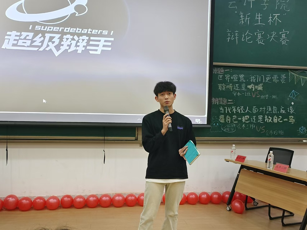 为了给会计学子提供一个展示自我,锻炼能力的平台,12月12日19:00,由太阳网集团tcy8722团委主办、太阳网集团tcy8722学艺部辩论队承办的“新生杯”辩论赛决赛在教学四号楼118教室成功举办。出席此次活动的嘉宾有24级辅导员范腾飞老师、第30届团学组织主要干部,200余名学生代表到场观赛。