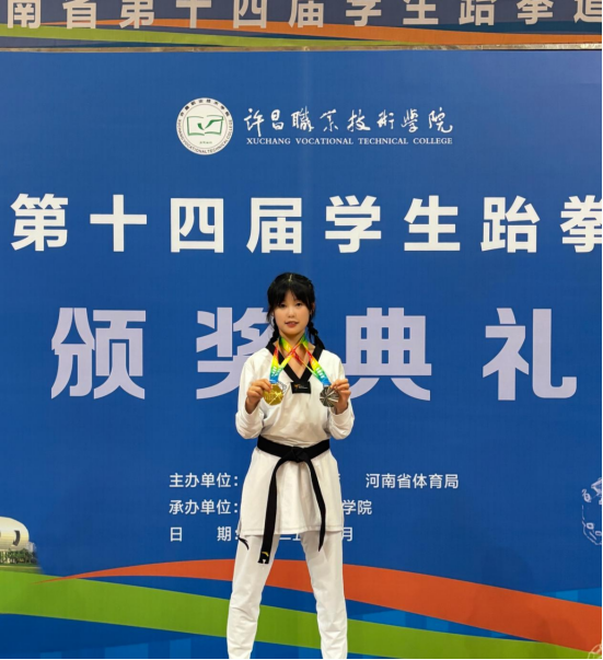 在5月15日刚刚结束的由河南省教育厅、河南省体育局主办的“2025年河南省第十四届学生跆拳道比赛(大学生组)”上,会计学子姚苗苗一人获得两金一银三枚奖牌及单项第六名,张嘉硕获得个人击破项目第四名。两名同学在比赛中勇攀高峰,凭借过硬实力与顽强斗志,斩获多项佳绩,为学校和学院增光添彩。