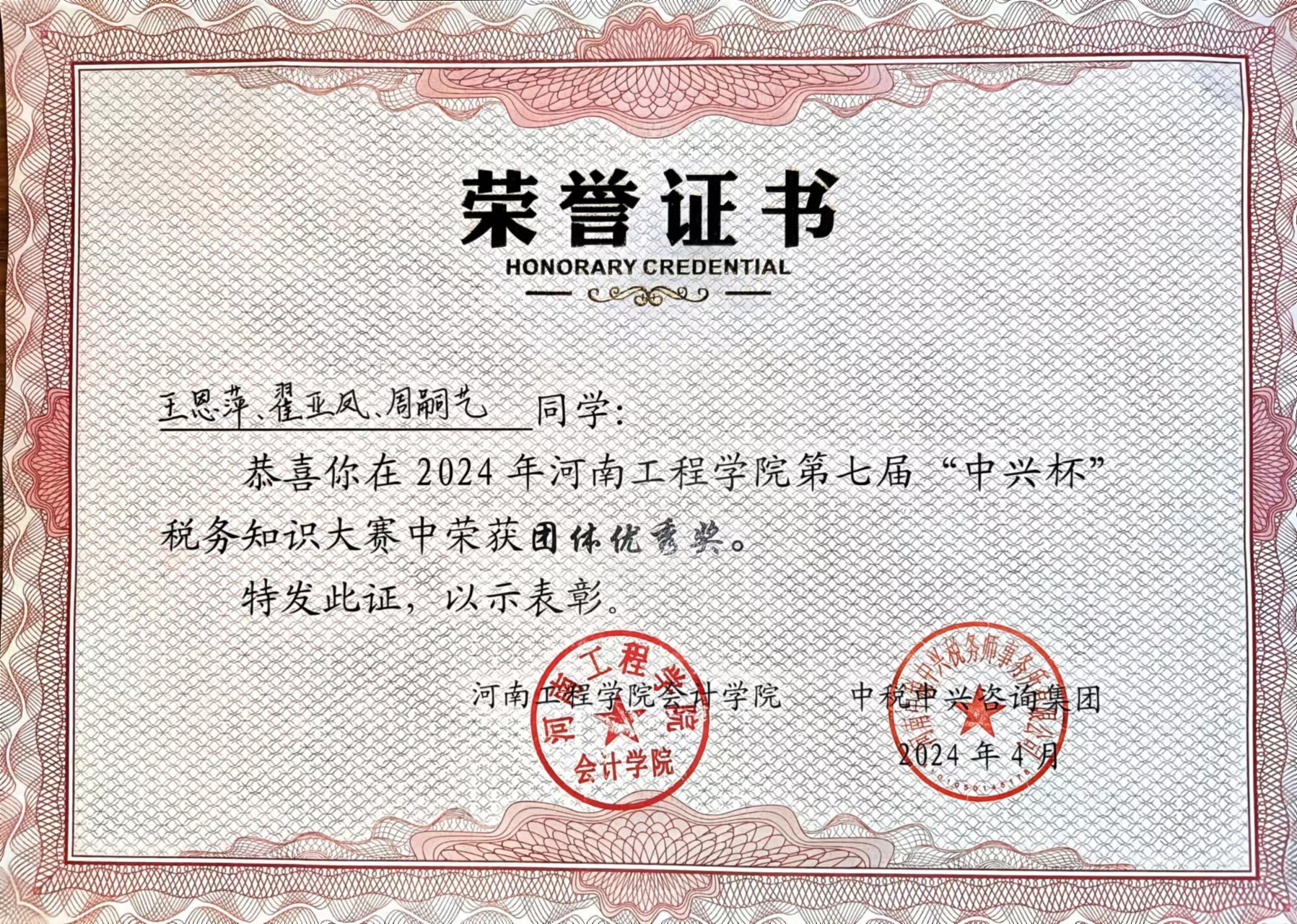 破浪队荣获第七届“中兴杯”税务知识大赛决赛优秀奖