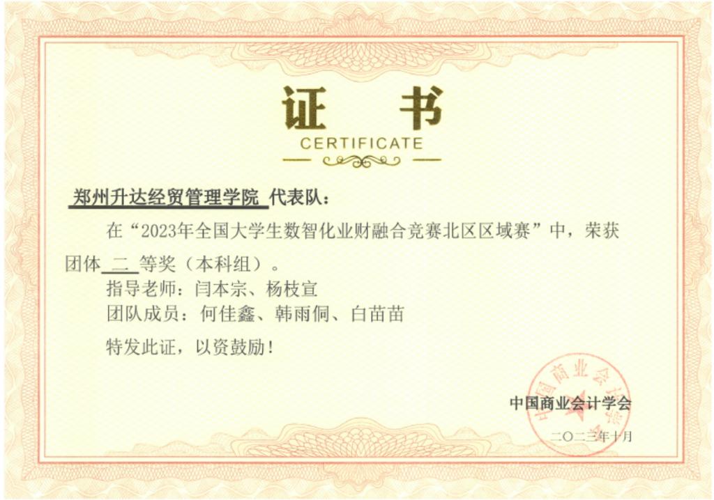 经过学院层层选拔,我院选派何佳鑫、韩雨侗和白苗苗三位同学组成团队参赛,由闫本宗、孟硕、杨枝宣和王梦园四位老师负责指导。经过老师们悉心指导和同学们一个多月的刻苦训练,最终我校代表队与河南财经政法大学、天津商业大学、青岛农业大学等高校代表队同获全国北区前30%的好成绩,喜获北区二等奖。