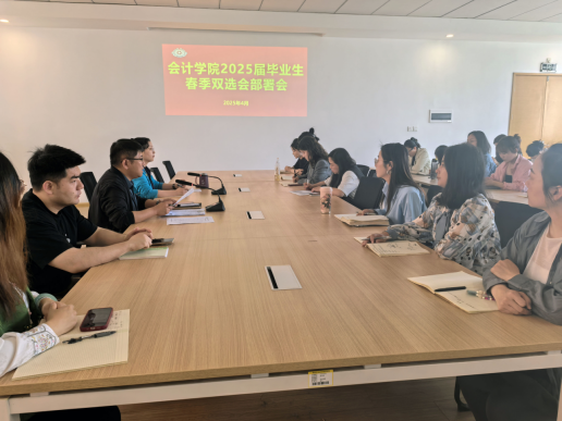 会议伊始,张蕾书记强调了本次春季双选会对于毕业生就业和学院发展的重要意义。她指出,2025 届毕业生面临着新的就业形势和机遇,学院要以此次双选会为契机,进一步加强与用人单位的联系与合作,拓宽毕业生的就业渠道,为学生提供优质、多元的就业岗位。同时,要求各毕业班辅导员明确目标,强化责任担当,齐心协力做好双选会的各项筹备和组织工作,为毕业生顺利就业保驾护航。