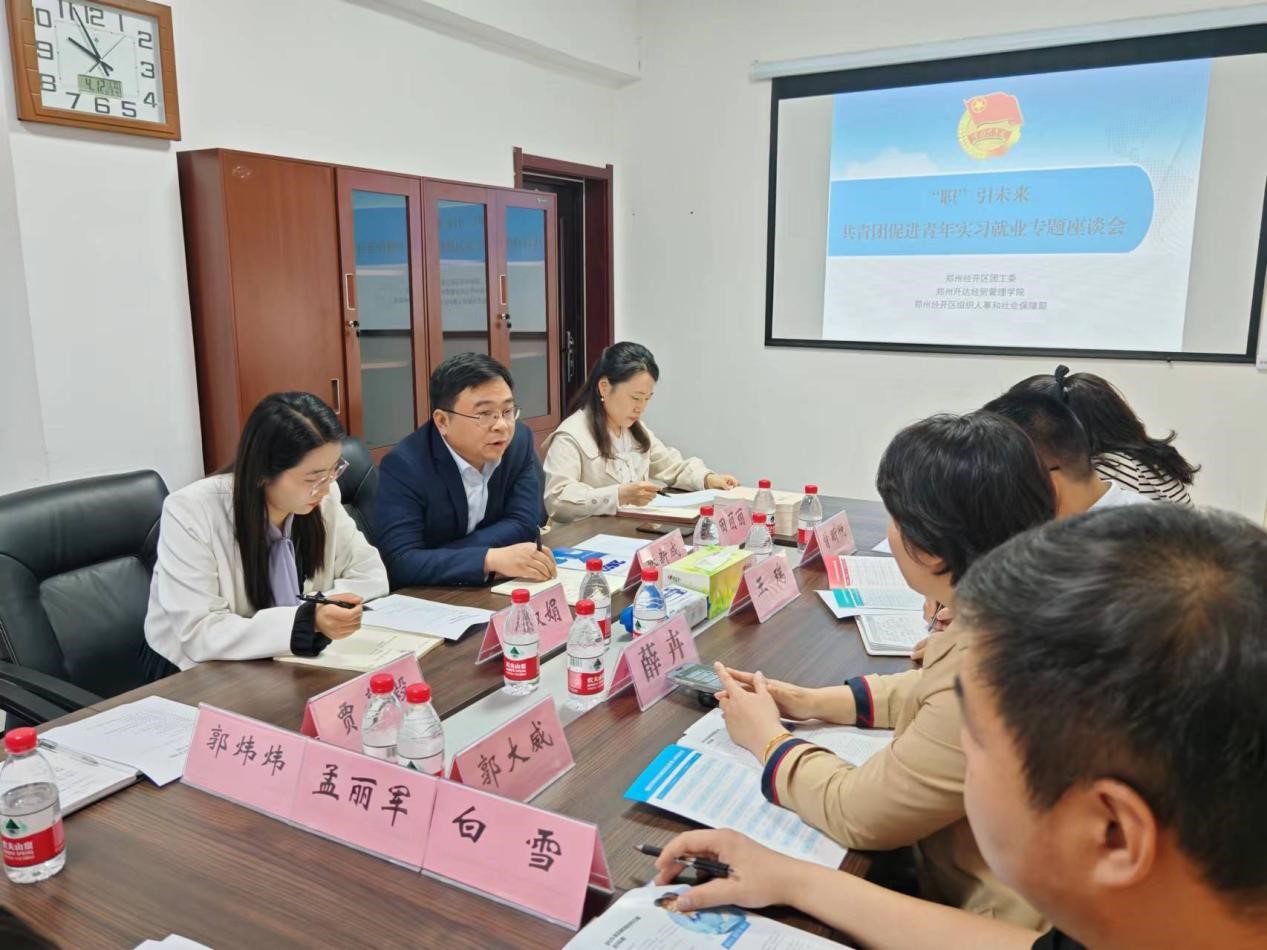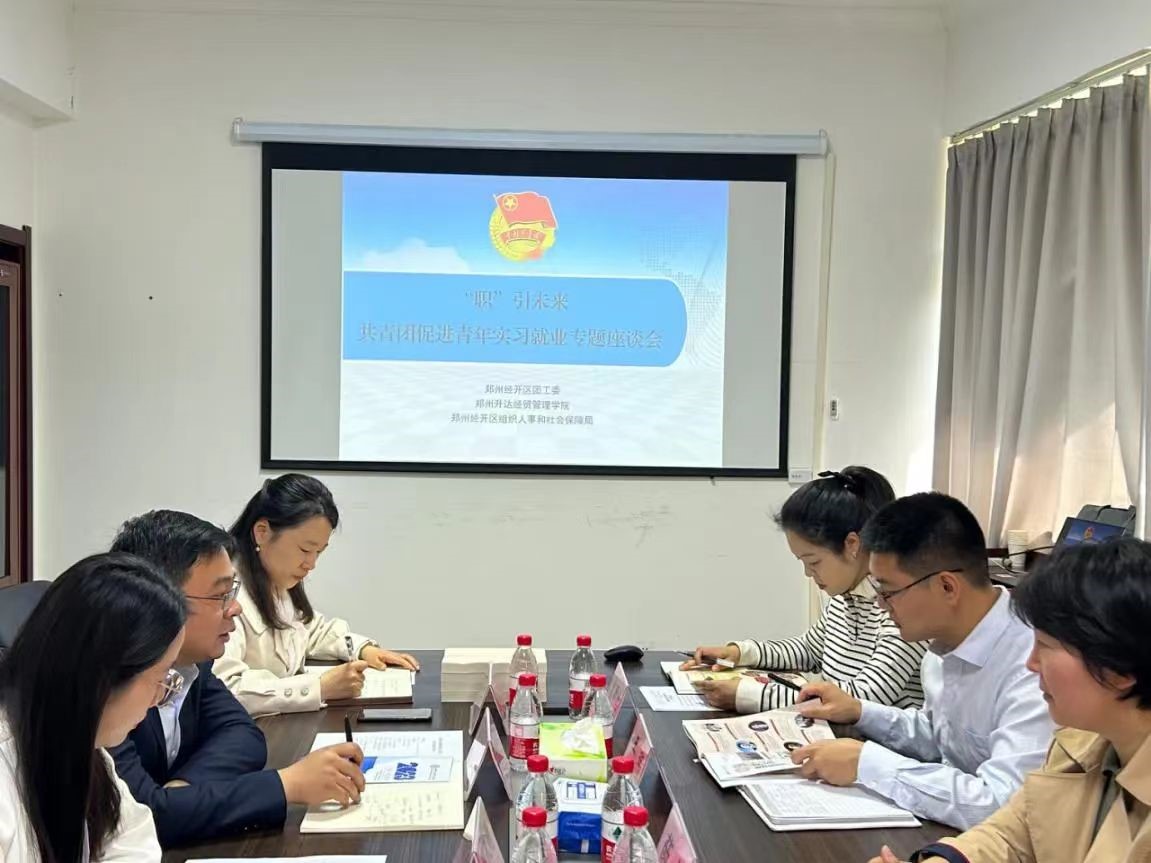 为推动校政企融合发展、深化产学研合作模式、访企拓岗、搭建人才对接新平台,4月12日上午,太阳网集团tcy8722张新成副院长一行赴郑州市经开区管委会调研交流。经开区组织人事和社会保障局副局长薛卉,团工委书记、经开投发公司副总经理王瑞,团工委副书记曾昕悦等相关领导热情接待,双方在经开投发公司4-605会议室进行座谈,座谈会议由经开区管委会团工委副书记曾昕悦主持。