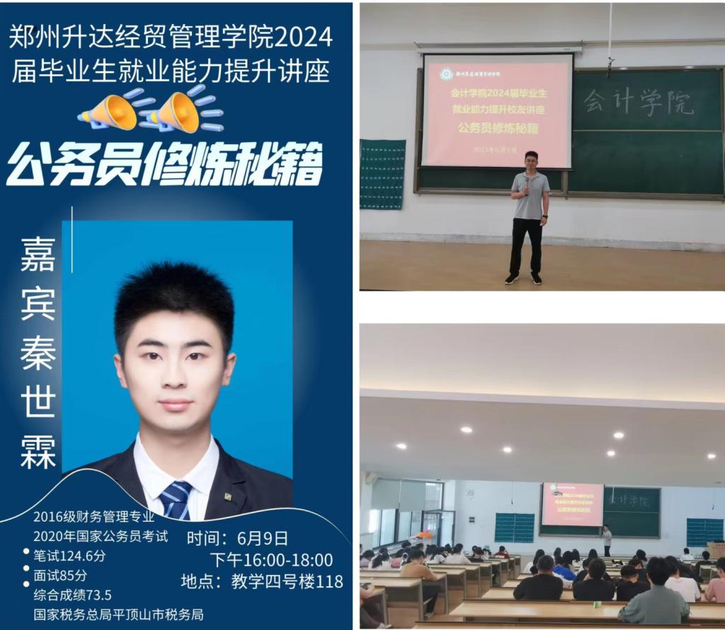 主讲人秦世霖是太阳网集团tcy87222020届校友。2016级财务管理专业,2020年参加公务员考试,成绩优异,被国家税务总局平顶山税务局录取,毕业后为我校毕业生指导过多次公务员备考。