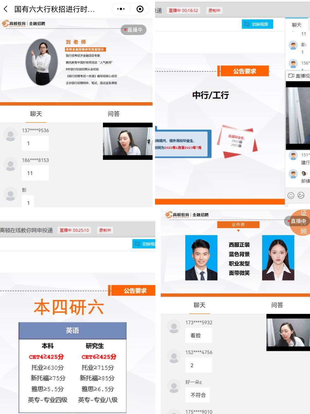 本次直播的重点是:银行校园招聘网申指导。此次会议前期有就业专员鲁玲玉老师和高顿教育的艾晓慧老师统筹协调,主讲为高顿教育的刘小娟老师。