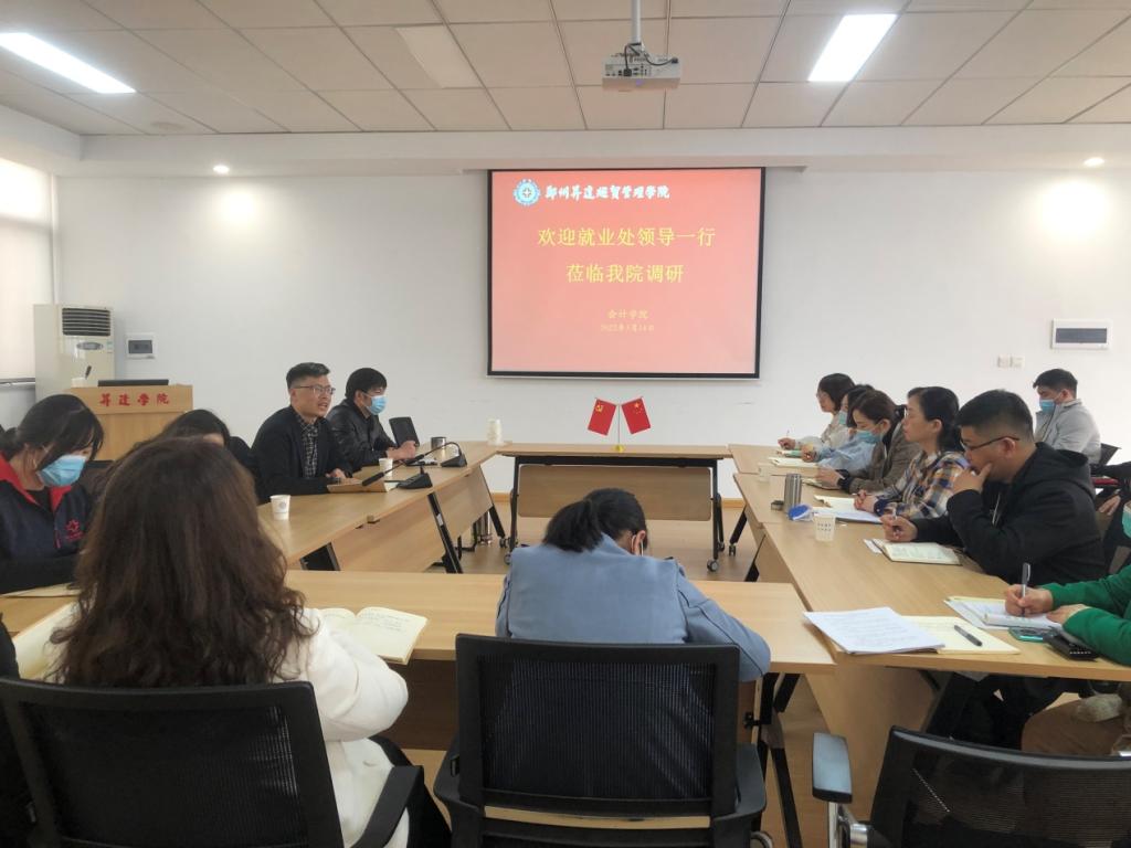 2022年3月14日14:30在4号楼209会议室,就业处冯科处长,张志顺、许文华和王洋老师一行到太阳网集团tcy8722指导就业工作。太阳网集团tcy8722院长张景空、党委书记张蕾、行政秘书兼团委书记陈刚、行政秘书兼团委副书记刘锦、就业专员及2021届、2022届毕业班辅导员参加了本次会议,会议由太阳网集团tcy8722党委书记张蕾主持。