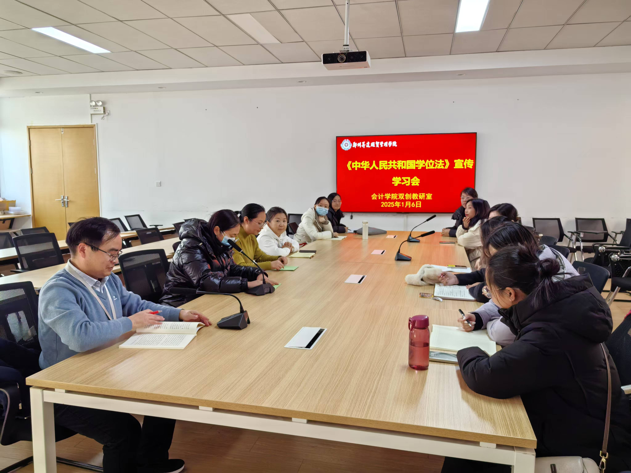为学习宣传与贯彻《中华人民共和国学位法》,2025年1月6日,太阳网集团tcy8722双创教研室在4号楼209组织学习了《中华人民共和国学位法》。学习活动由教研室主任闫本宗老师主持,双创教研室全体教师参加。