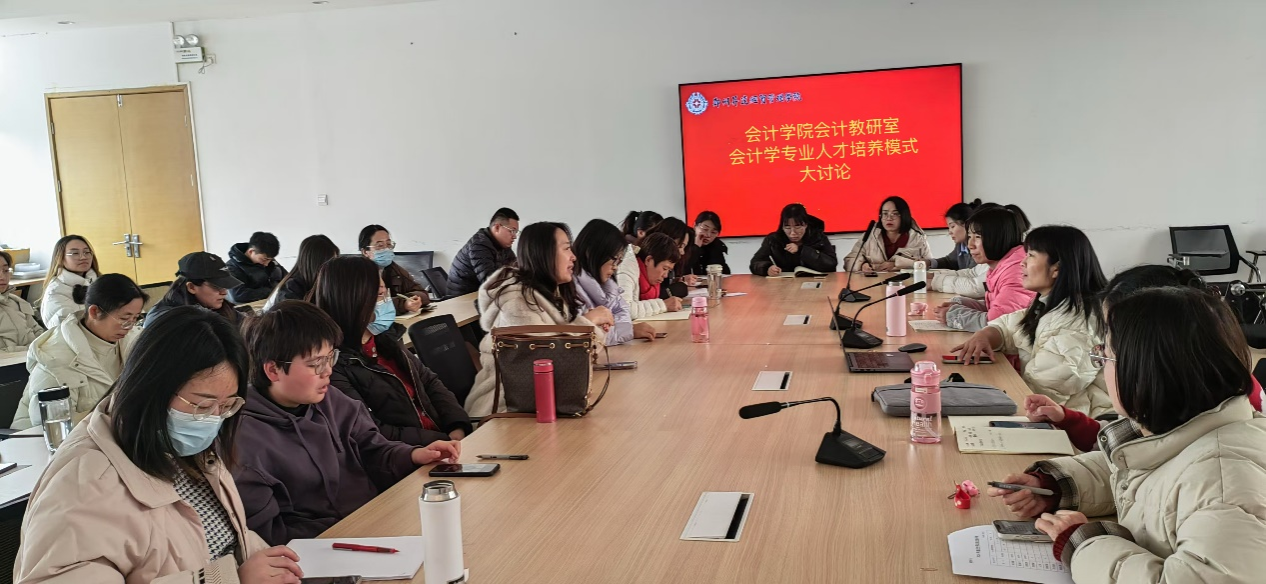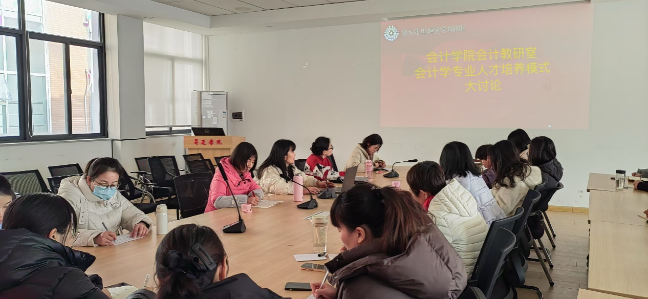 为提升会计学专业人才培养质量,创新人才培养模式,会计教研室于2025年1月9日下午在教学4号楼209会议室召开会计学专业人才培养模式研讨会,会议由车伟娜主任主持,会计教研室全体教师参会。