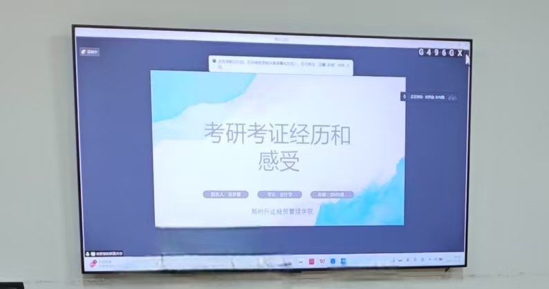 徐梦豪校友率先与大家分享了他的考研考证经历和感受。他详细介绍了自己备考的过程,强调了合理规划和时间管理的重要性,并分享了自己在备考中遇到的困难与解决方法。徐梦豪的分享,不仅为同学们提供了宝贵的经验,更激发了大家勇敢追梦的决心。