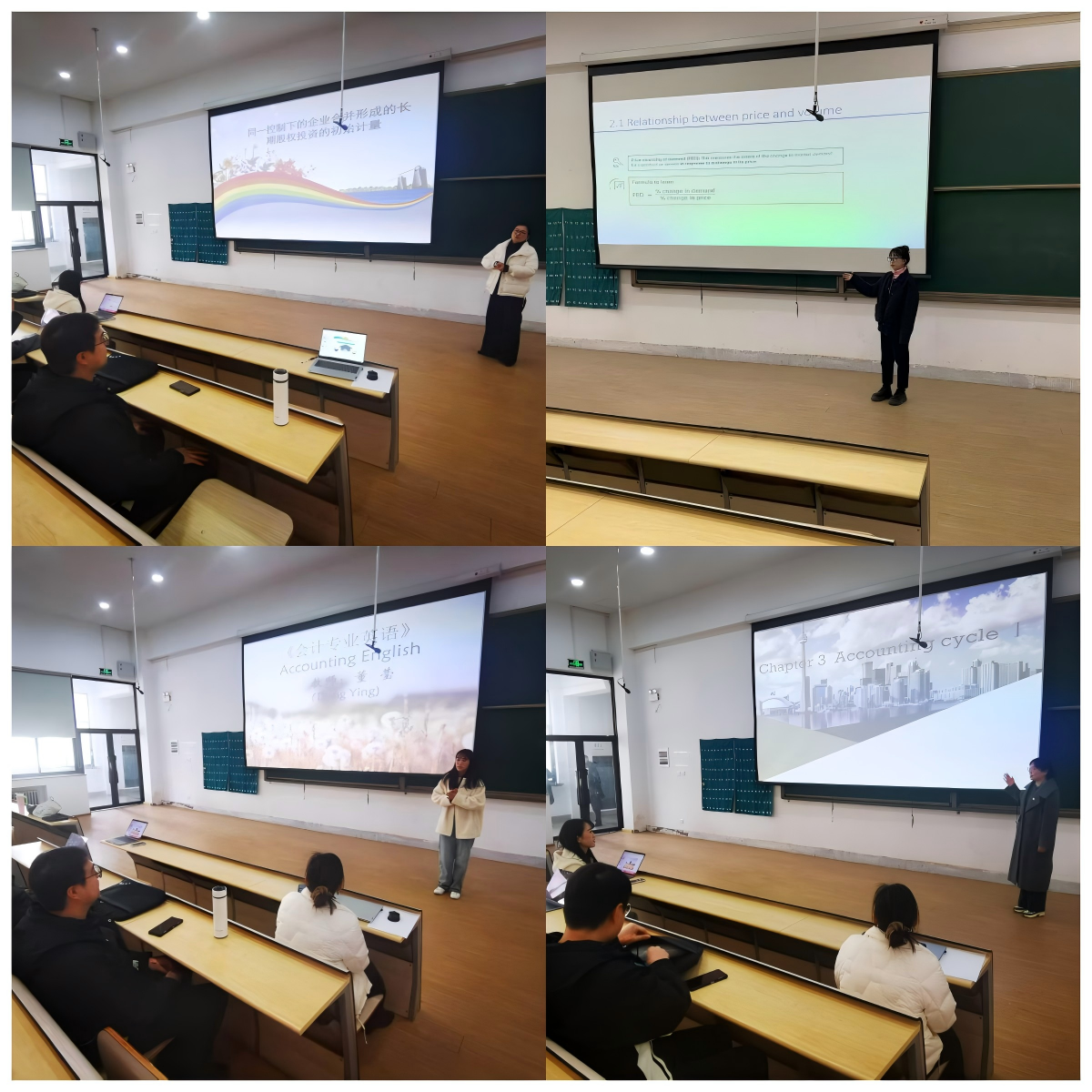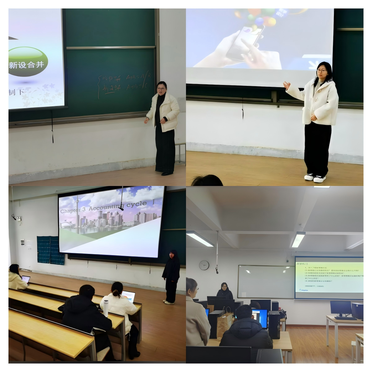 在磨课环节,各位教师充分展示了扎实的专业知识和丰富多样的教学方法。刘之茵老师在《证券投资实训》课程的教学展示中,灵活运用OBE教学理念,通过小组讨论、案例分析等互动环节,充分调动学生的积极性,培养学生的团队协作能力和解决实际问题的能力。卜祥云老师在讲解《高级财务会计(下)》课程中的“同一控制下企业合并形成的长期股权投资初始计量”内容时,运用大量生活中的实际案例,深入浅出地阐述了复杂的理论知识,让学生更容易理解和接受。同时,还巧妙地融入了课程思政元素,引导学生树立正确的职业观和价值观。