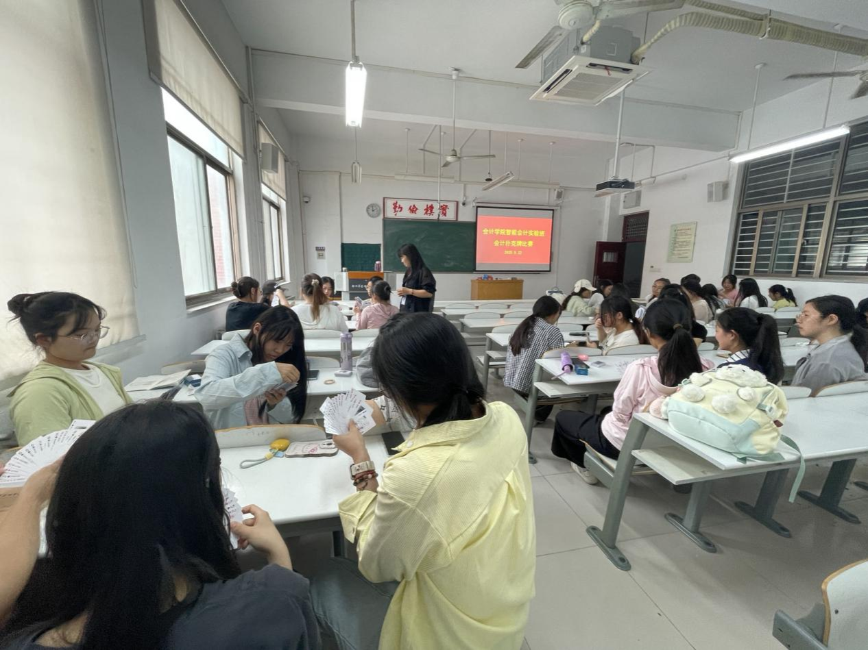 此次会计扑克牌比赛,打破传统教学模式,将专业知识融入趣味竞技,不仅激发了学生学习热情,还为学生提供了展示专业技能与团队协作的平台,助力智能会计实验班学生在实践中成长,为未来职业发展奠定坚实基础。