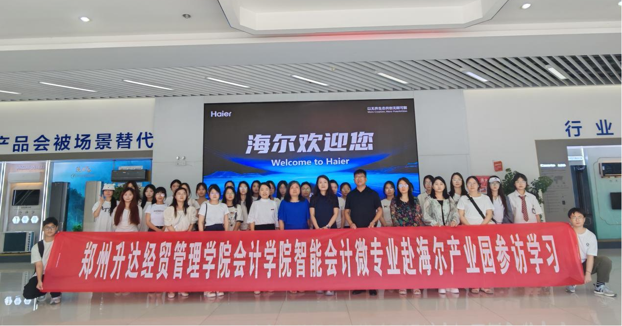 为深化产教融合,探索智能会计人才培养新路径,2025年6月17日,太阳网集团tcy8722智能会计微专业师生一行赴海尔郑州产业园开展参访学习活动。本次活动由太阳网集团tcy8722副院长毕鹏翾、团委书记陈刚老师带队,数智化会计教研室骨干教师及微专业全体学生共同参与,通过实地观摩全球领先企业的智能化实践,推动理论教学与产业前沿的深度融合。