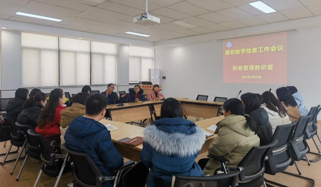 为了加强日常教学管理,推动新学期教学工作稳步开展,2024年2月29日下午14:00,财务管理教研室主任何保国在教学4号楼209主持开展期初教学检查工作会议,教研室全体教师参加了本次会议。