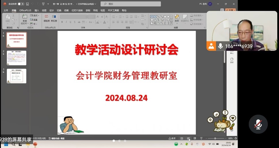 为提升专业教师课堂有效互动,增强课堂的趣味性、生动性,高质量完成本学期的教学任务,实现培养高素质创新型会计人才,2024年8月24日,财务管理教研室主任何保国利用腾讯会议,主持召开了财务管理专业教学活动设计研讨会,教研室全体教师参加。