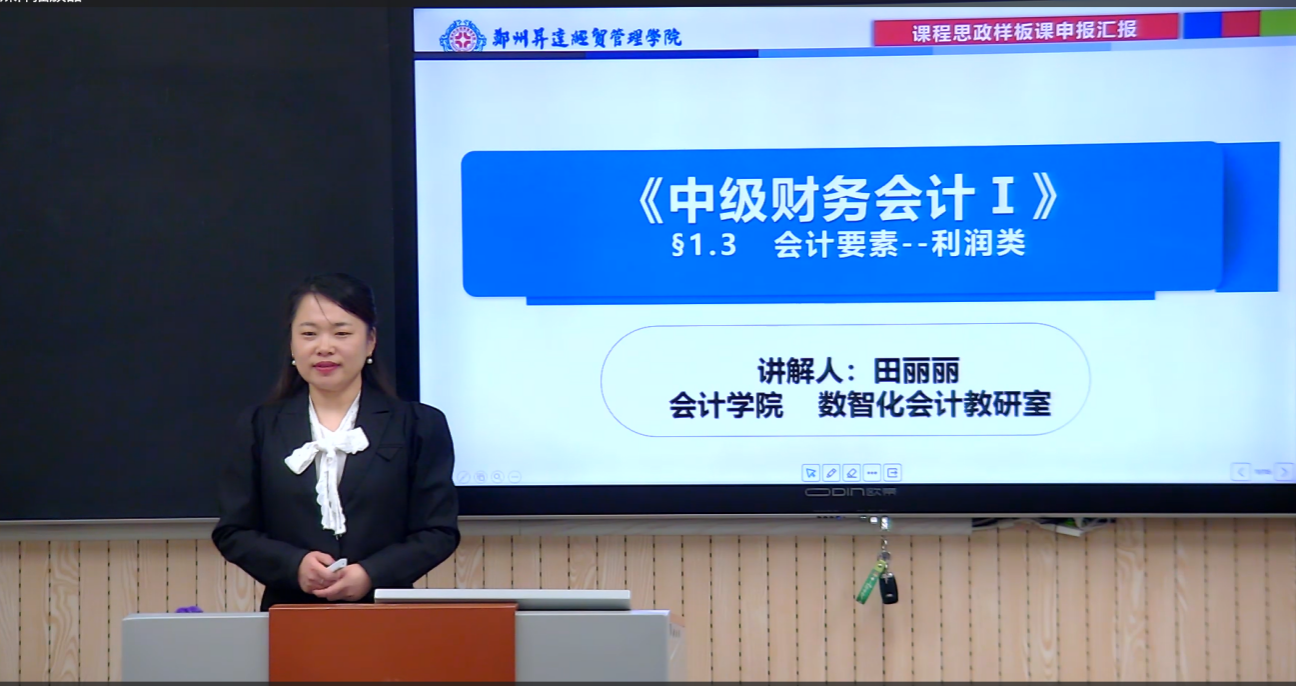田丽丽老师以课程思政样板课申报为契机,从课程分析、思政路径、教学设计、教学反思四个方面,介绍了中级财务会计的课程思政实施方案,并结合华为2023年的年报,以“会计要素-利润类”为主题,介绍了利润的构成及计算方法;田老师在课程教学中启用优慕课“随堂教学”功能,注重信息化技术的有效应用,增加了课堂师生互动的便利性,显著提升了学生的课堂参与度。