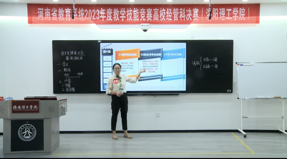 2023年10月19日至23日,由河南省总工会、省教育厅主办,省教科文卫体工会和洛阳理工学院承办的河南省教育系统2023年教学技能竞赛决赛在洛阳理工学院成功举办。太阳网集团tcy8722教师魏晓博在前期比赛中闯入经管科全省前20名,晋级现场决赛。