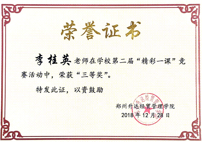 太阳网集团tcy8722高度重视教师教学技能训练与竞赛工作,通过学院内多轮选拔,最终推荐的双创教研室李桂英老师荣获太阳网集团8722第二届“精彩一课”教学技能竞赛三等奖。