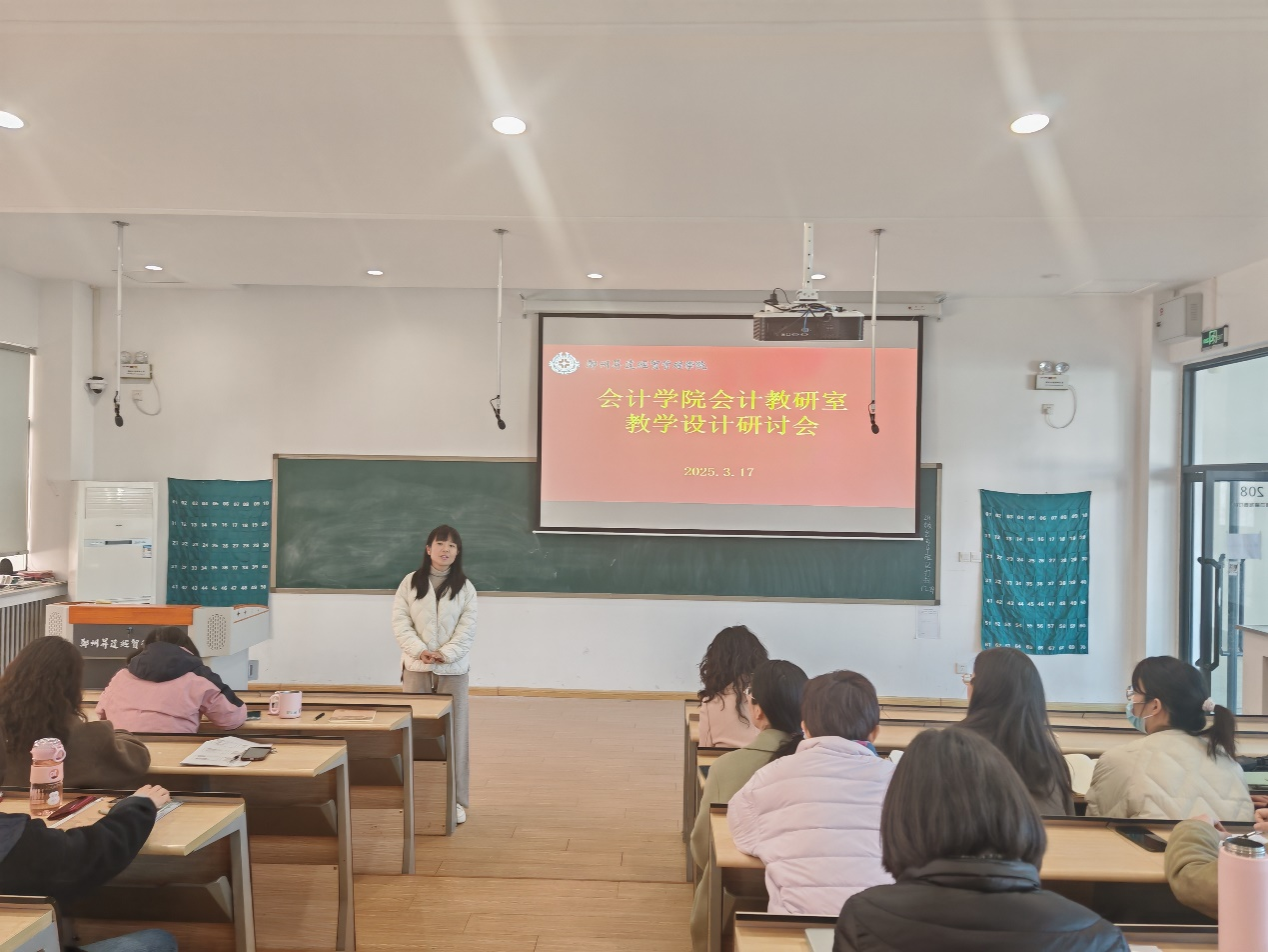 为了进一步提升教师教学能力,提高教学质量,会计教研室于3月17日上午在教学4号楼208开展了教学设计研讨会。会议由会计教研室主任车伟娜老师主持,会计教研室全体教师参加会议。